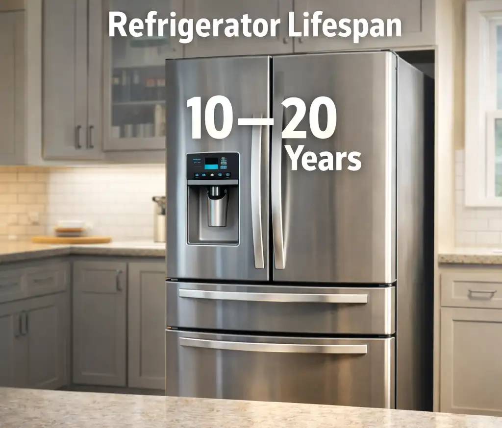 Сучасні холодильники зазвичай служать від 10 до 20 років, при цьому високоякісні моделі часто перевищують цей діапазон. Довговічність холодильника здебільшого залежить від якості матеріалів і складання. Основні компоненти, які з часом можуть вийти з ладу, включають льодогенератор, компресор, систему охолодження, ущільнювачі дверей та керуючу електроніку.